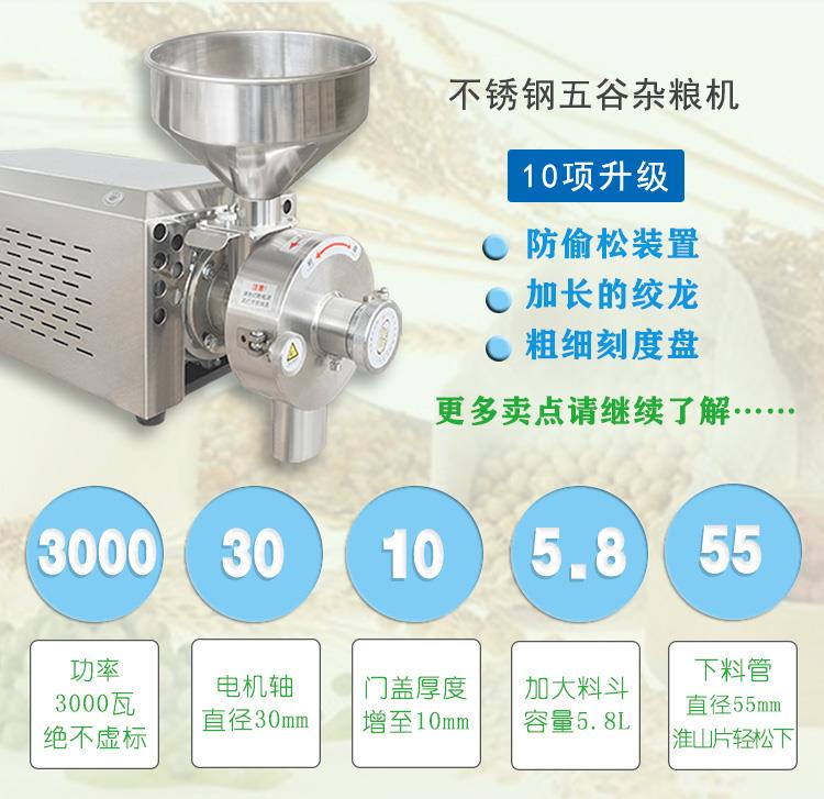 五谷雜糧粉碎機(jī)是將各種糧食、中藥材等食物研磨成50~200目的均勻粉末的一種研磨設(shè)備。五谷雜糧磨粉機(jī)采用優(yōu)質(zhì)不銹鋼制作,是配備全銅線“中國有名品牌電機(jī)”,根據(jù)客戶需要,可以配220V生活用電,也可以配380V工業(yè)用電,價格相同,動力強(qiáng)勁,五谷雜糧磨粉機(jī)靠兩塊布滿齒槽的磨盤對磨運(yùn)轉(zhuǎn)從而將物料磨成粉末。連續(xù)投料式作業(yè),結(jié)構(gòu)精密,噪音較小,操作簡易,粉碎細(xì)膩,無粉塵,適用于超市和商場專柜、五谷雜糧加工店使用。五谷雜糧磨粉機(jī)改變了鐵質(zhì)磨粉機(jī)之外表粗糙、噪音大、出粉粗、難清理、電機(jī)動力不足等缺點,加工出的食品達(dá)到了GMP食品衛(wèi)生要求。